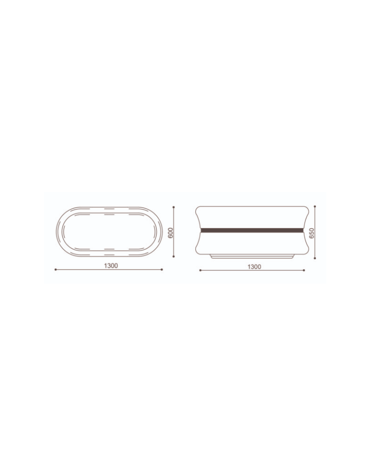 Fioriera ovale in cemento calcestruzzo colore Grigio travertino - con fascia color rame - cm 130x60x65h - Conforme ai CAM