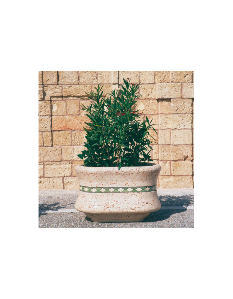 Fioriera ovale in graniglia di marmo levigato e antidegrado - Colore a scelta - con greca decorativa - cm 100x60x65h - CAM