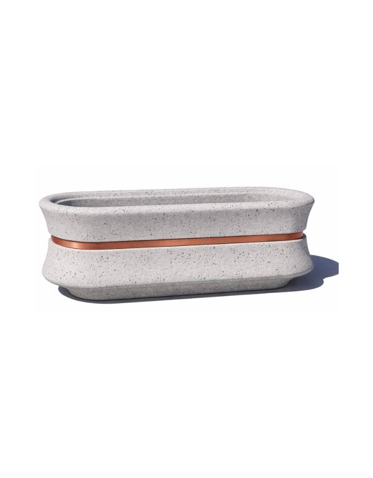 Fioriera ovale in graniglia di marmo levigato e antidegrado - Colore a scelta - con greca decorativa - cm 130x60x65h - CAM