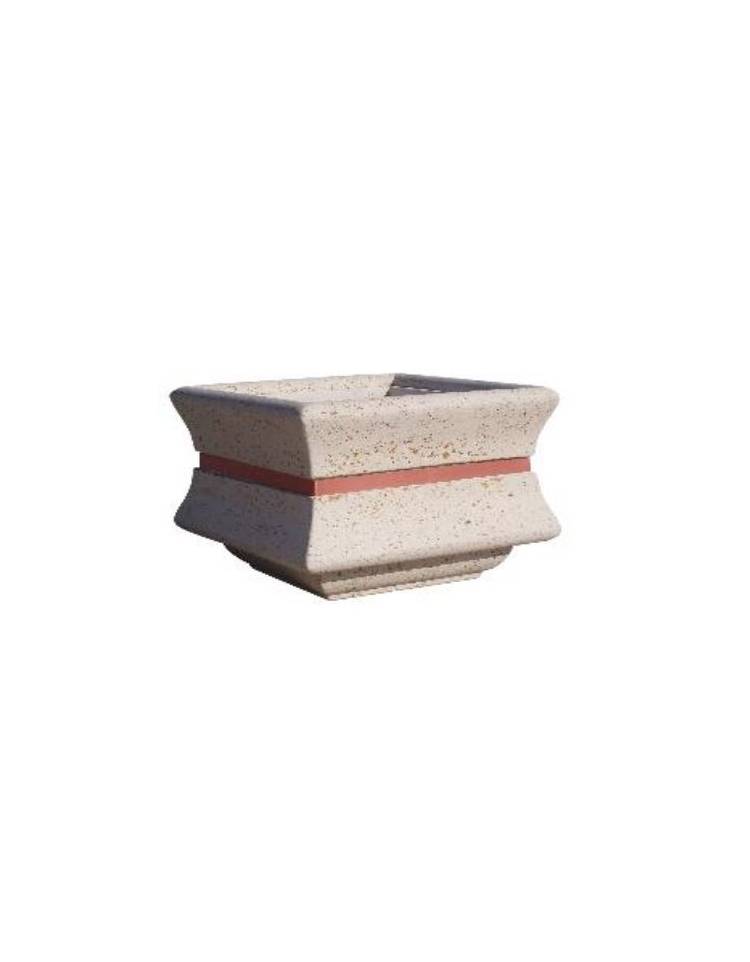 Fioriera quadrata in cemento calcestruzzo colore Bianco travertino per esterno - con fascia color rame - cm 90x90x65h - CAM