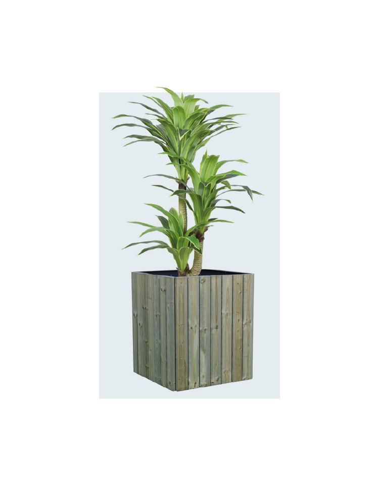 Fioriera quadrata realizzata in acciaio zincato e verniciato, rivestita in doghe di legno di pregio.