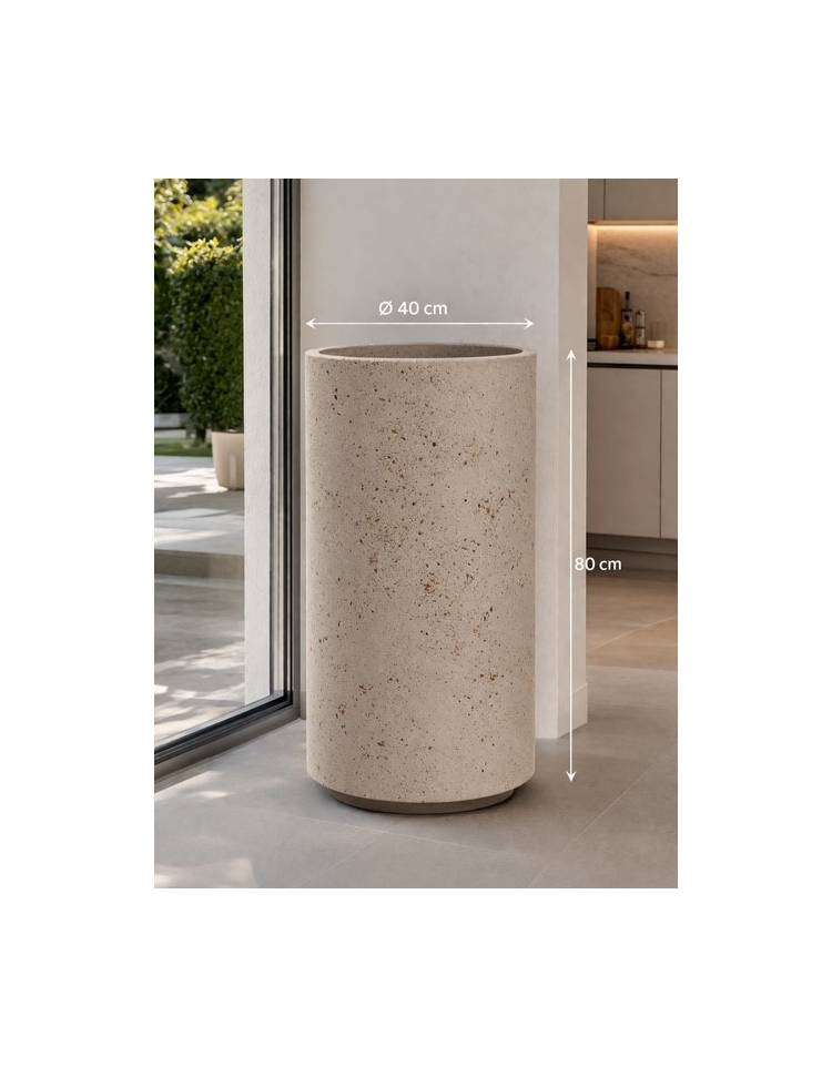 Fioriera tonda cilindrica in cemento calcestruzzo per esterno - colore Bianco sabbiato - con zoccolatura - cm Ø 40x80h - CAM
