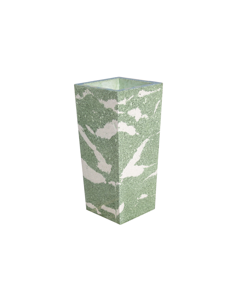 FIORIERA TRAPEZOIDALE IN CEMENTO CALCESTRUZZO COLORE BIANCO TRAVERTINO PER ESTERNO - CM 41x41x90h - Conforme ai CAM