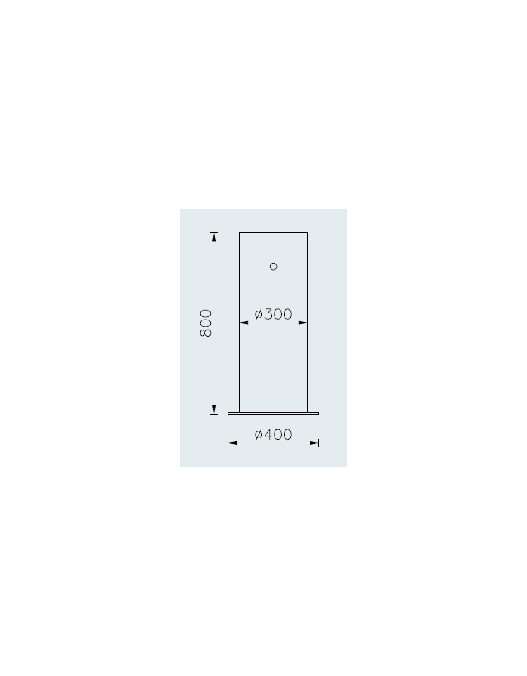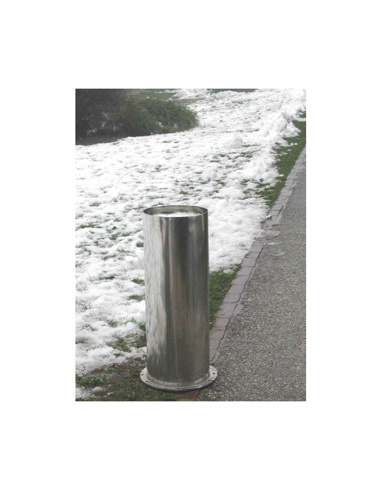 Realizzata interamente in acciaio inox verniciato con struttura portante cilindrica in acciaio di spessore 10/10 e catino di spessore 20/10, con finitura lucida; getto dell’acqua continuo. Viene fornita con la parte idraulica montata, completa di tubazioni in rame d. 14 mm sp. 1 fino al livello terreno. La fontana va posizionata direttamente su pozzetto di scarico d. 300 mm e fissata a mezzo tasselli di espansione d. 8 mm utilizzando la flangia esterna d. 400 mm. E’ necessario prevedere il posizionamento di un regolatore di pressione (ecluso dalla fornitura).