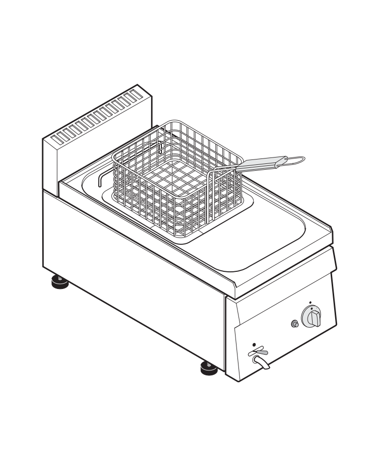 Friggitrice a gas da banco, 1 vasca da Lt 8, con scambiatori di calore - potenza gas kw 6,25 - cm 35x60x30h