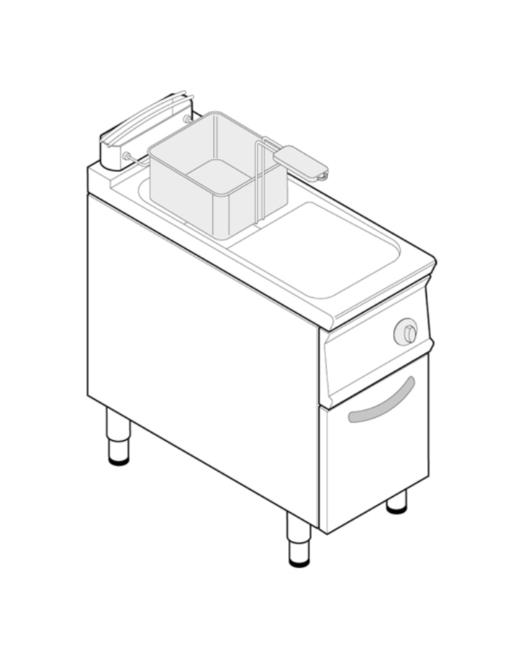 Friggitrice a gas Lt 17 su mobile - 1 vasca con fondo a "V" da cm 33x42x47h - potenza totale 16,5 kw - cm 40x90x90h