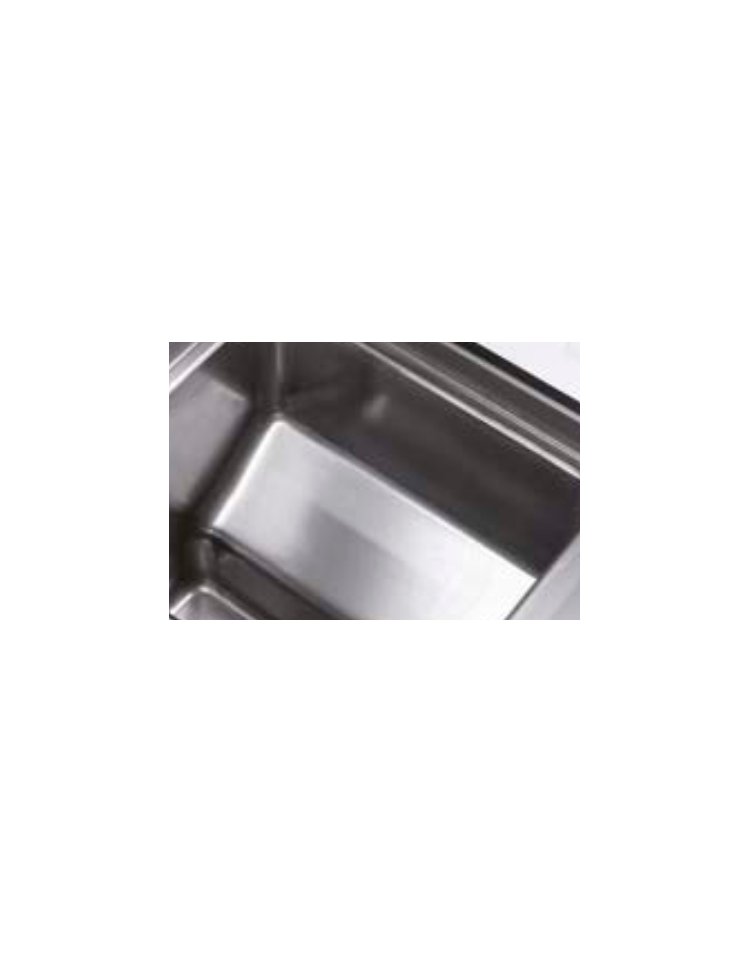 Piano di lavoro stampato al quale è saldata emerticamente la vasca di cottura stampata in AISI 304 con angoli raggiati.