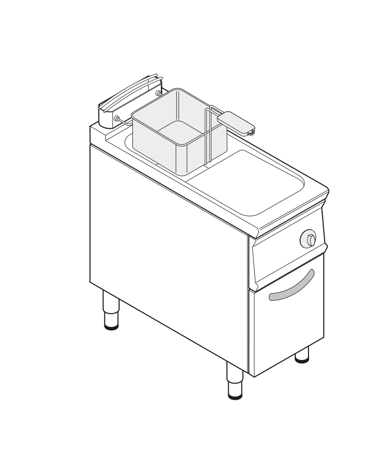 Friggitrice a gas da 17 L su vano chiuso da 40 cm con scambiatori di calore in vasca che assicurano una maggiore resa energetica.