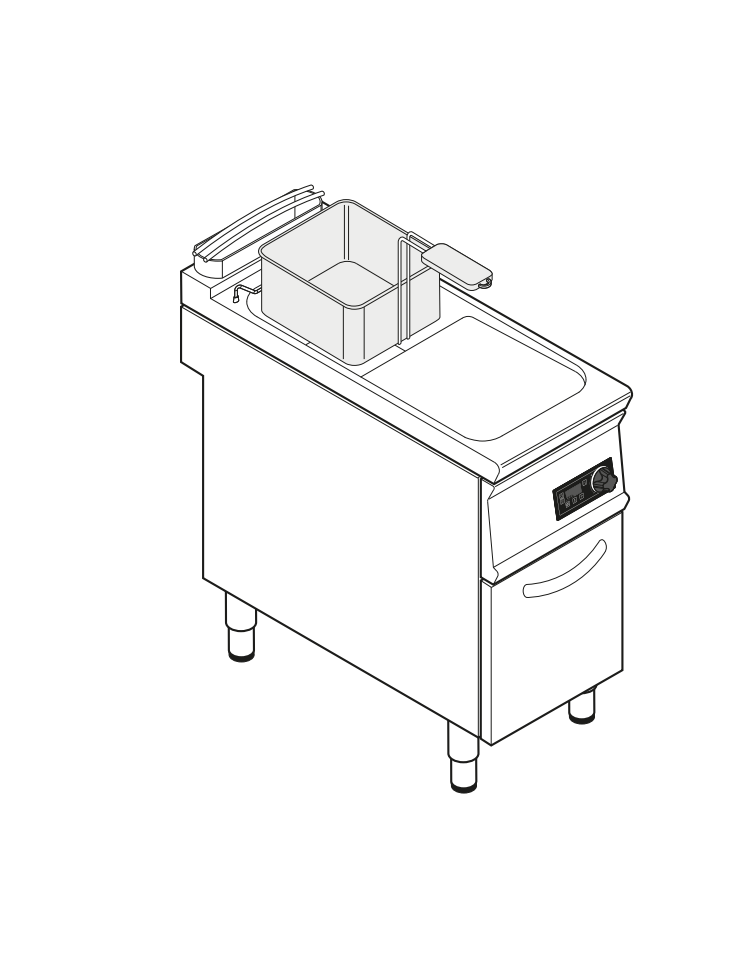 Friggitrice elettrica con controllo elettronico con vasca da 21 L su vano chiuso da 40 cm.
