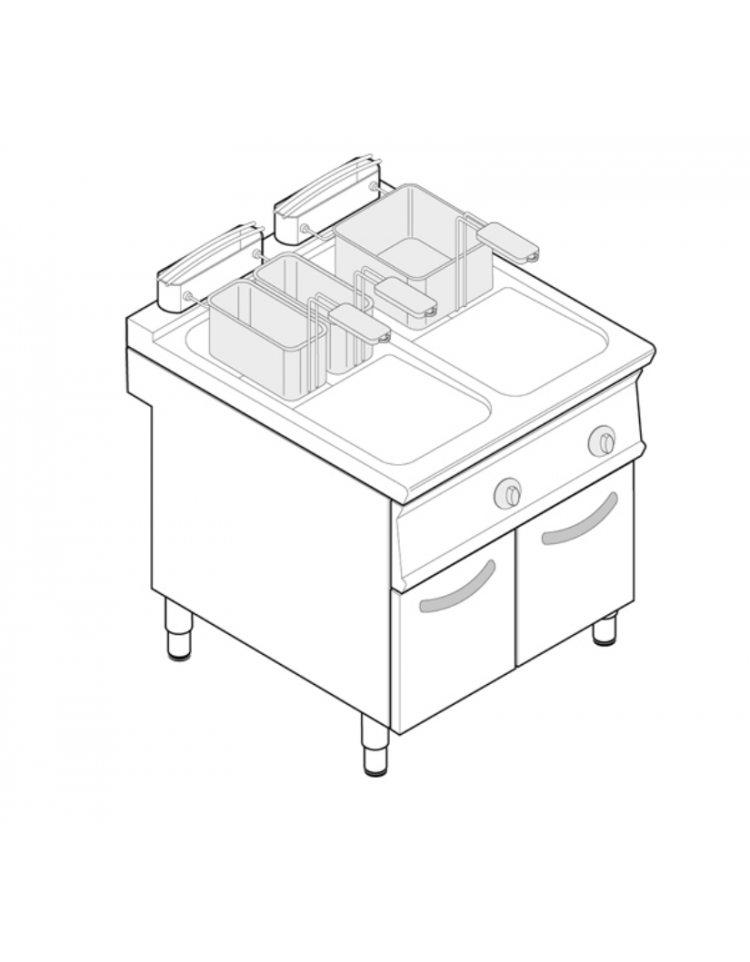 Friggitrice elettrica con 2 vasche da 17+17 L su vano chiuso da 80 cm.