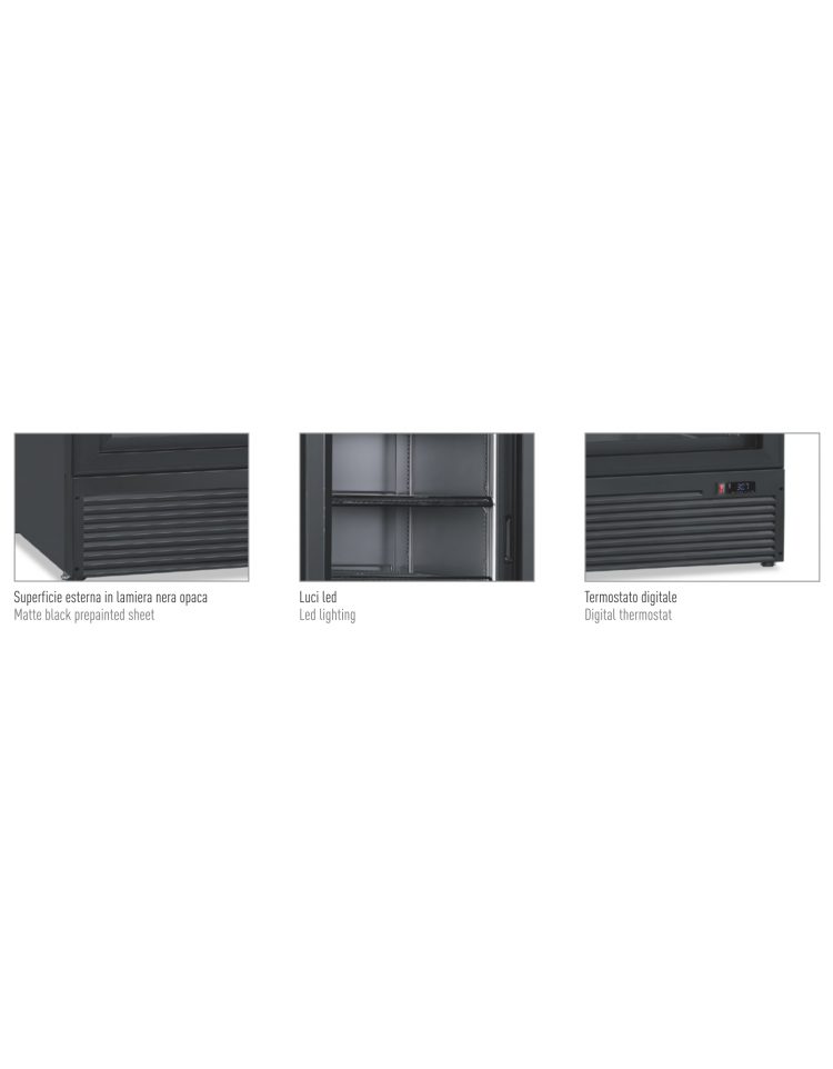 Frigo bibite doppia porta scorrevole ventilato - colore nero - temperatura +0°/+10°C - Classe D - cm 113x75x197,6h