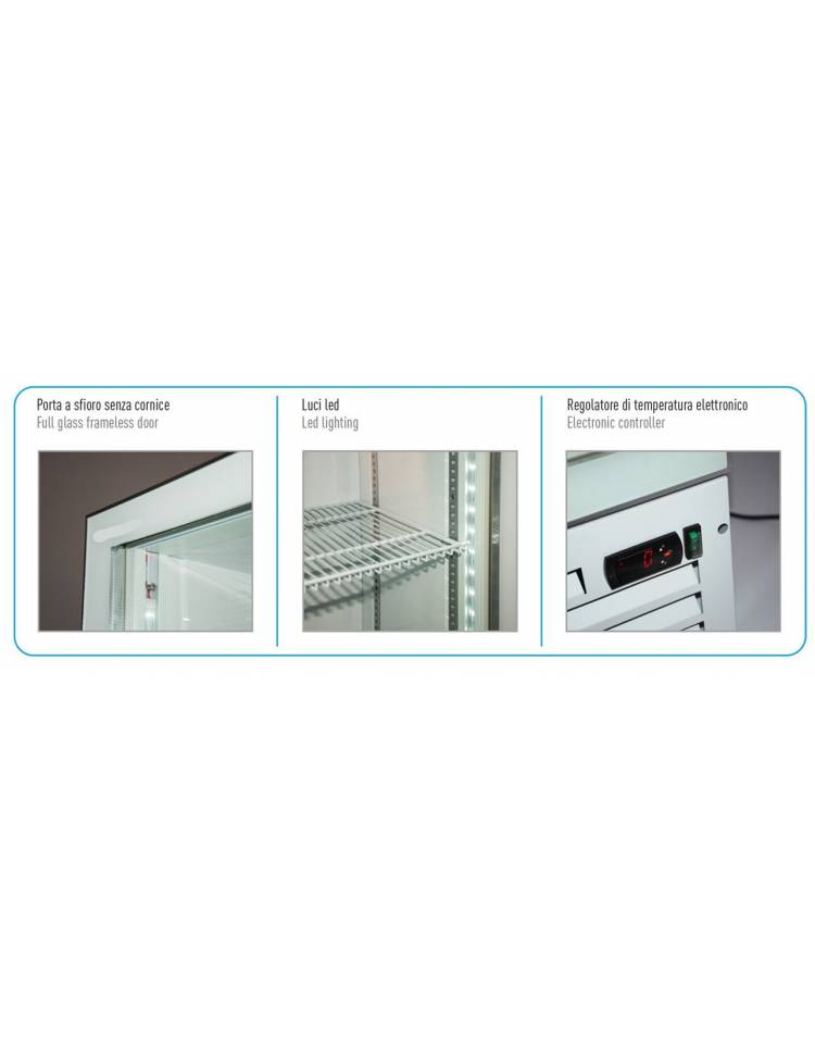 Frigo vetrina per bevande slim statico con agitatore 0°C/+10°C, capacità Lt. 160, porta a sfioro senza cornice - cm 39x47,5x188h