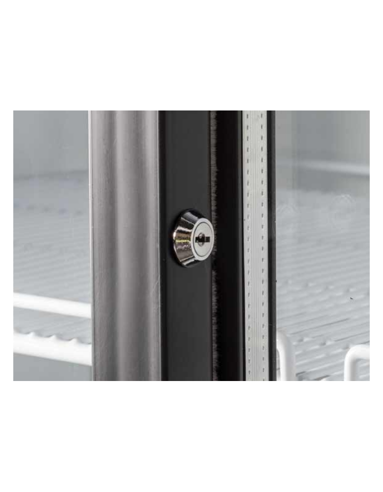 Il modello è stato progettato per essere una vetrina refrigerata per bevande affidabile e versatile, ideale per esporre e mantenere alla giusta temperatura qualsiasi tipo di bottiglia e lattina. Con una capacità di 800L, di colore bianco e profilo della porta in colore grigio, questo prodotto è equipaggiato con luce interna verticale con interruttore indipendente, serratura, termometro digitale, 4 ripiani regolabili, porte scorrevoli autochiudenti e doppio vetro temperato di sicurezza.