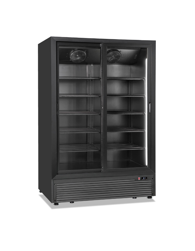 Frigo vetrina ventilato per bevande con 2 porte scorrevoli - temperatura +1°C/+10°C - Classe F - cm 100x74,2x200h