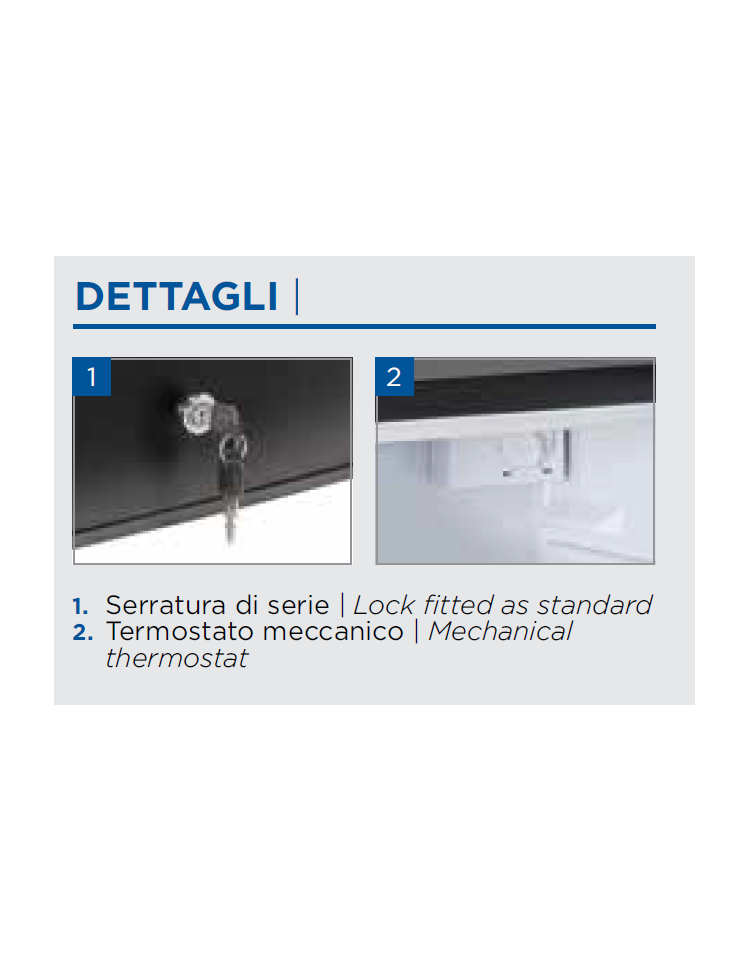 Il modello è un nuovo frigobar ad assorbimento, ideale per le camere d‘albergo, con funzionamento silenzioso e basse vibrazioni. Con una capacità di 48 litri, questo minibar è equipaggiato con luce interna a LED, serratura, ripiano porta, ripiano regolabile e maniglia lungo il profilo dell’anta.