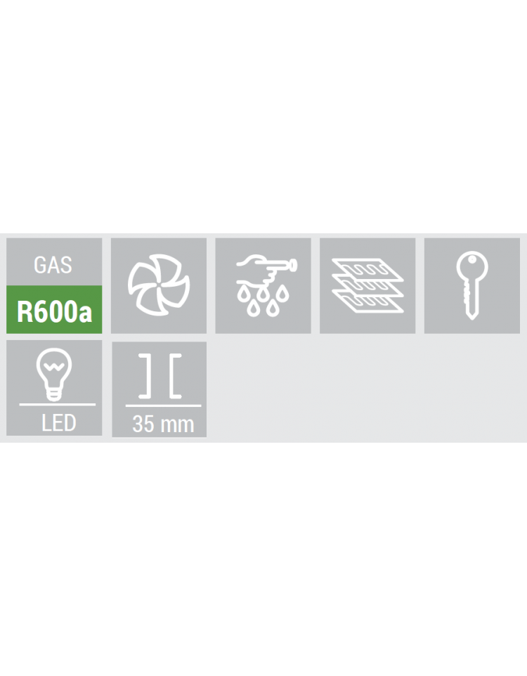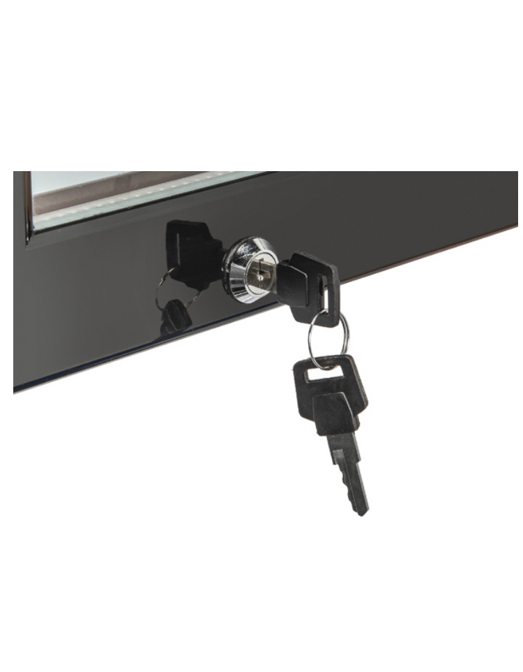 Progettata per essere un frigorifero da banco per bevande, moderno, affidabile e versatile, ideale per esporre e mantenere alla giusta temperatura qualsiasi tipo di bottiglia e lattina. Con una capacità di 52 litri, completamente rifinito in nero e con una maniglia lungo il profilo della porta, questo prodotto è equipaggiato con un ripiano regolabile di colore nero, termometro digitale, serratura e un doppio vetro temperato di sicurezza.