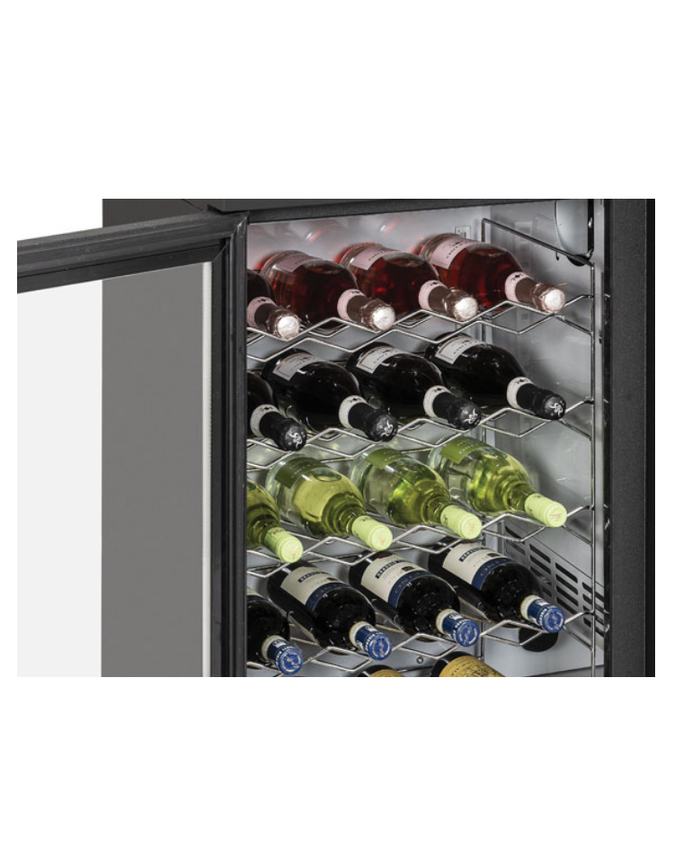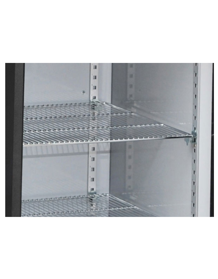 Il modello è stato progettato per essere un back bar elegante, affidabile e versatile, perfetto per mantenere alla giusta temperatura qualsiasi tipo di bottiglia e lattina. Con una capacità di 315L, con esterno in acciaio zincato nero verniciato a polvere con finitura opaca ed interno in acciaio verniciato bianco, questo prodotto è equipaggiato con 2 porte a battente in vetro con maniglia cilindrica, 4 ripiani cromati regolabili, porta autochiudente, luce LED, serratura, termostato digitale e configurazione con cassetti a richiesta.