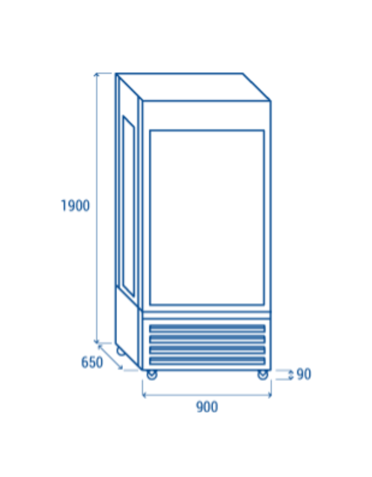 Frollatore carne panoramico - colore nero - capacità Lt. 600 - refrigerazione ventilata -2°/+10°C - Classe A - cm 90x65x190h