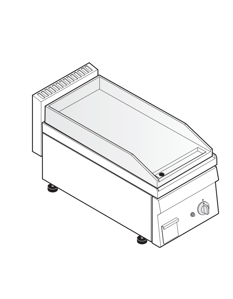Fry-Top a gas da banco, 1 zona cottura, piastra liscia cm 34,6x56,4, potenza gas Kw 4 - cm 35x65x28h