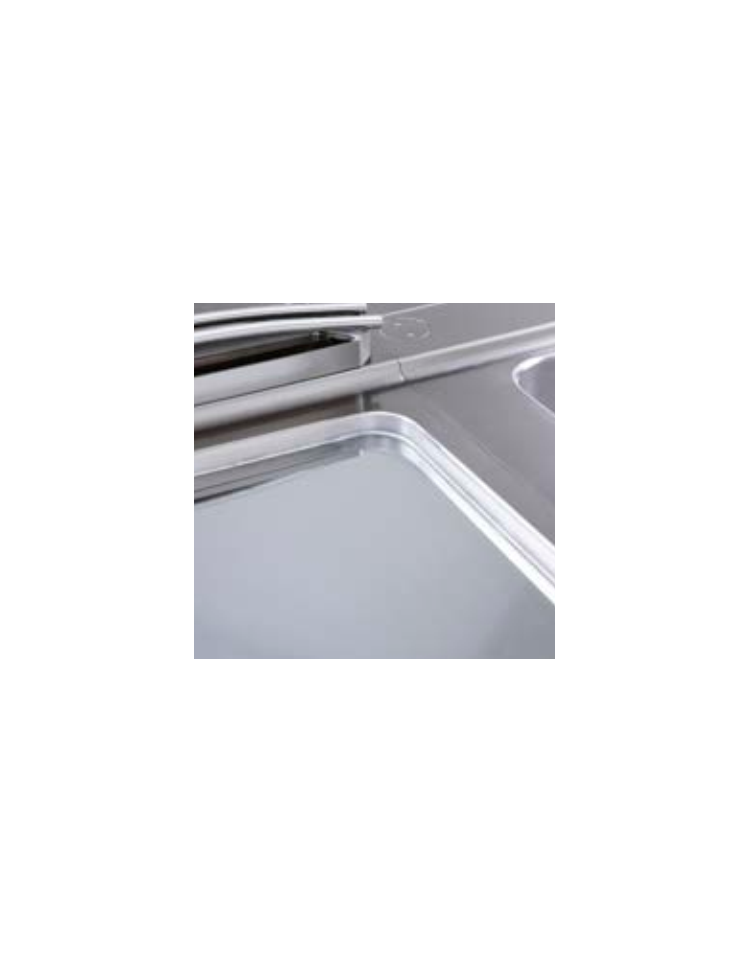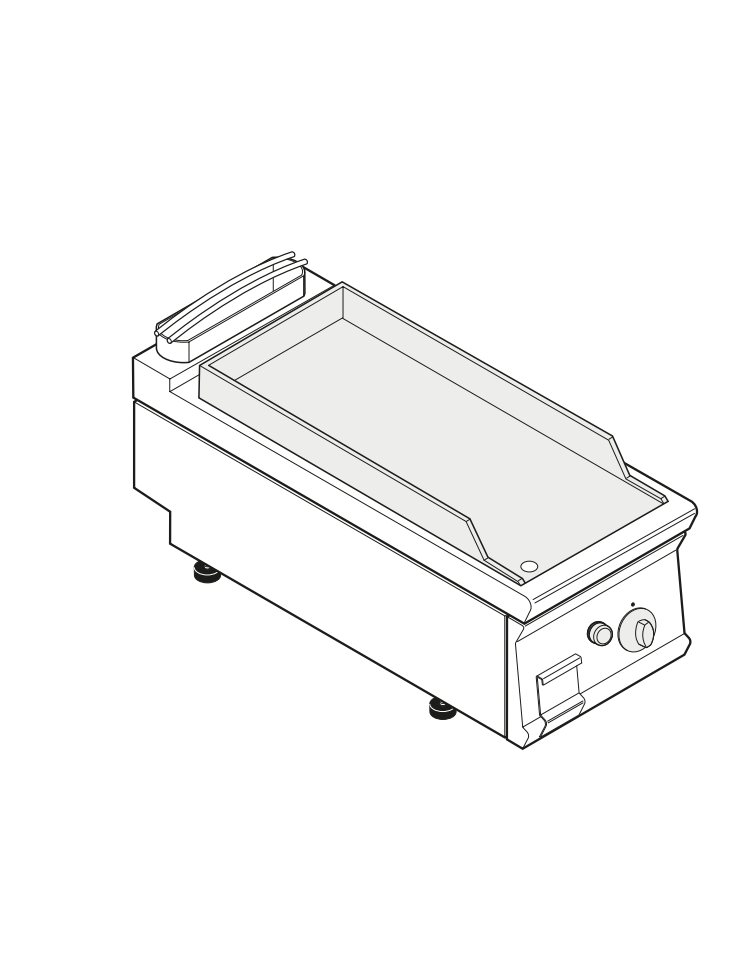 Piano di lavoro stampato al quale è saldata emerticamente la piastra di cottura incassata con ampia zona di cottura con angoli arrotondati per la massima igiene e facilità di pulizia.