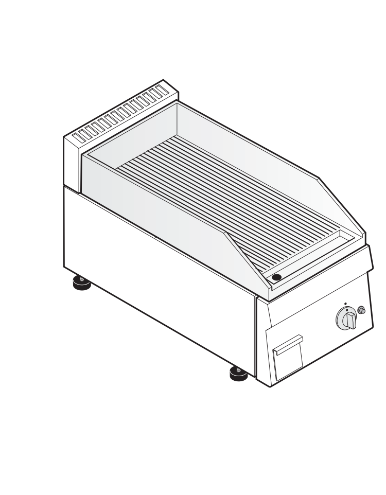 Fry-Top a gas da banco, 1 zona cottura, piastra rigata cm 34,6x52, potenza gas Kw 4 - cm 35x60x30h