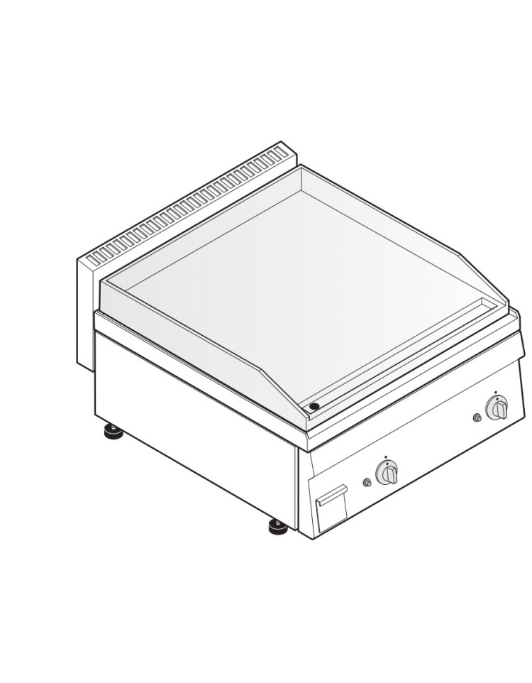 Fry-top a gas, versione top da 70 cm, con piastra di cottura liscia in acciaio.