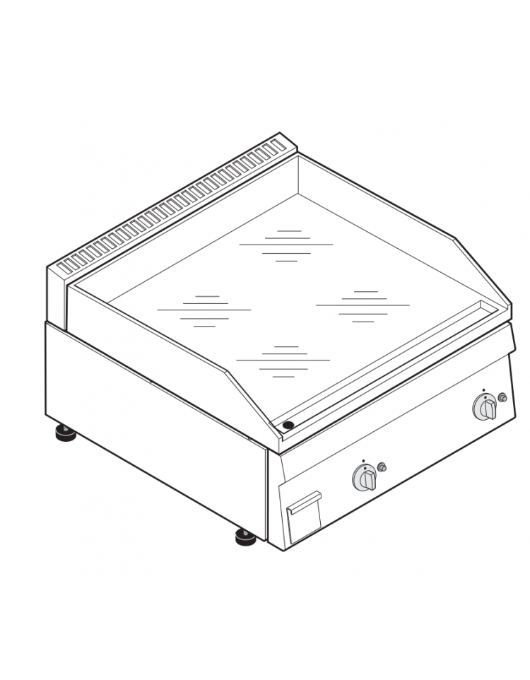 Fry-top a gas, versione top da 70 cm, con piastra di cottura liscia cromata a specchio raccomandato soprattutto per la cottura di prodotti delicati come pesce e verdure.