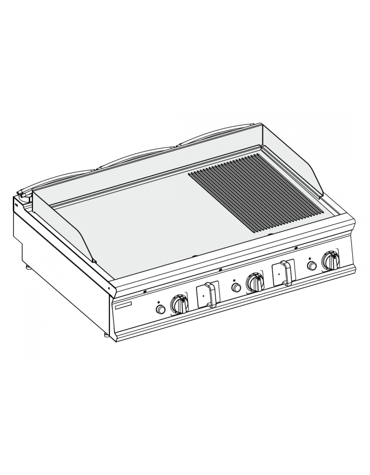 Fry-top a gas versione top da 120 cm con piastra di cottura 2/3 liscia e 1/3 rigata in acciaio.