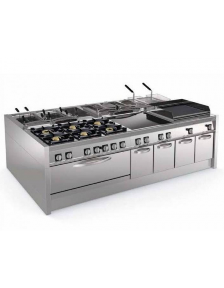 La piastra di cottura incassata e saldata ermeticamente al piano di lavoro permette di cucinare grandi quantità di cibi diversi.