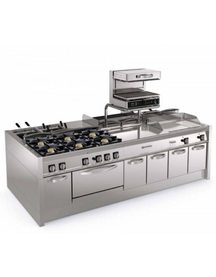 La piastra di cottura incassata e saldata ermeticamente al piano di lavoro permette di cucinare grandi quantità di cibi diversi.