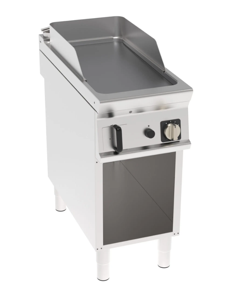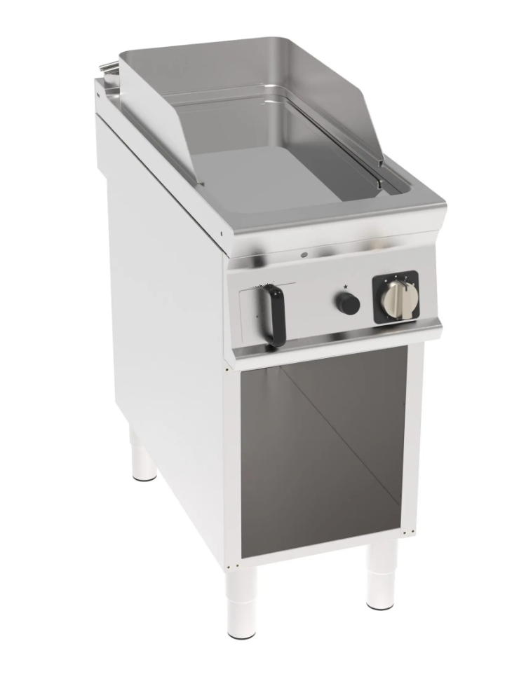 Fry Top a gas piastra liscia cromata su armadio aperto - potenza 10 Kw - cm 40x90x87h