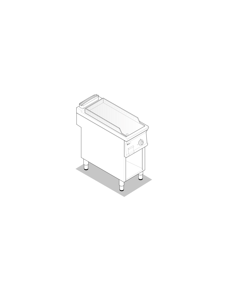 Fry-top a gas freestanding su vano aperto da 40 cm con piastra di cottura liscia cromata spazzolata che permette di cuocere una miriade di prodotti diversi: dalla carne al pesce e verdure.