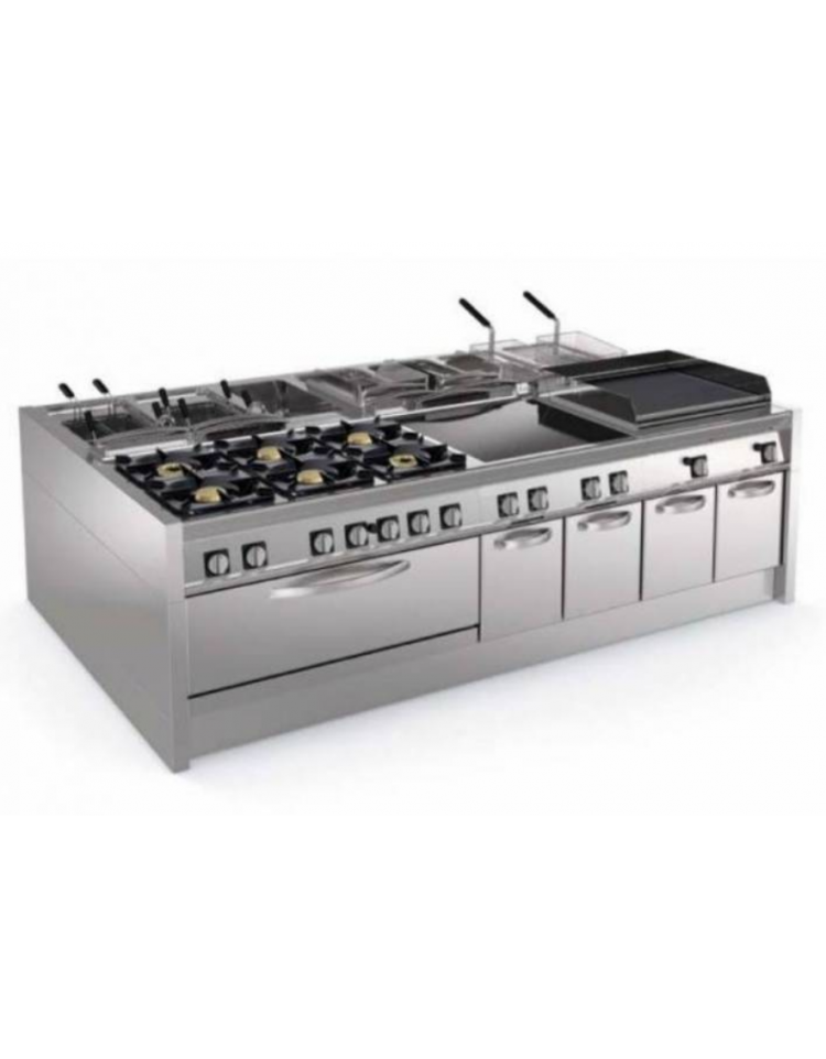 Piano di lavoro stampato al quale è saldata emerticamente la piastra di cottura incassata con ampia zona di cottura con angoli arrotondati per la massima igiene e facilità di pulizia.