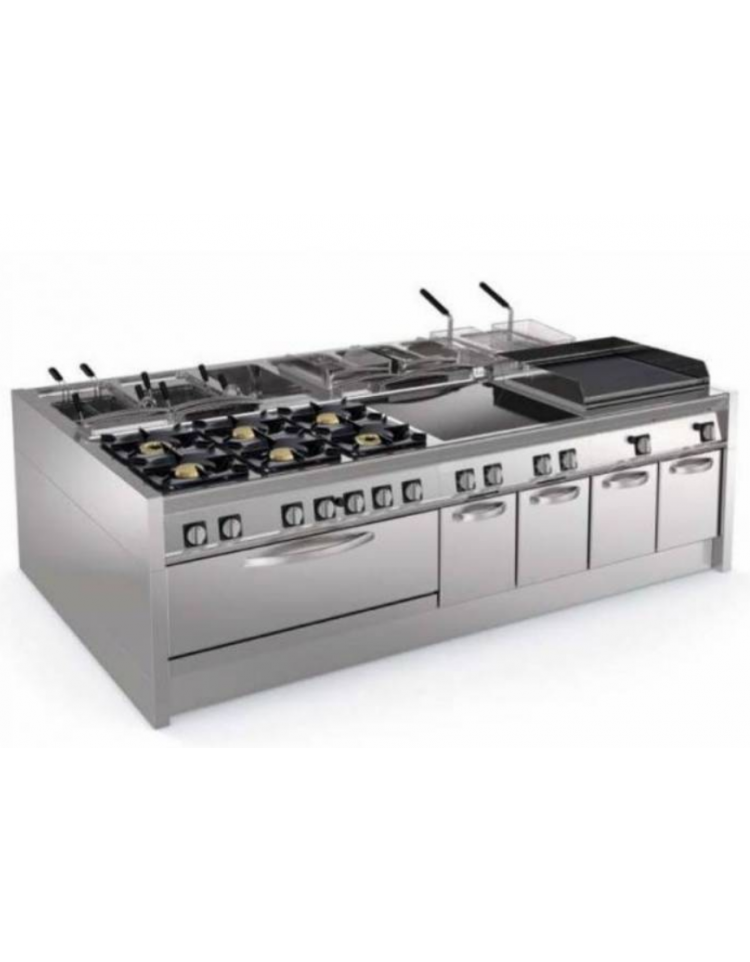 La piastra di cottura incassata e saldata ermeticamente al piano di lavoro permette di cucinare grandi quantità di cibi diversi.