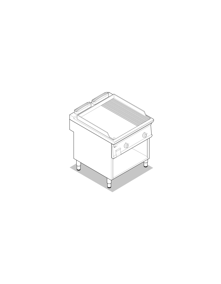 Fry-top a gas freestanding su vano aperto da 80 cm con piastra di cottura cromata spazzolata 2/3 liscia e 1/3 rigata che permette di cuocere una miriade di prodotti diversi: dalla carne al pesce e verdure.