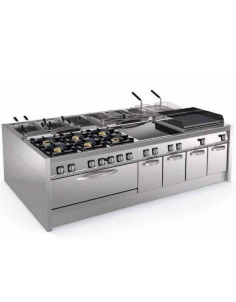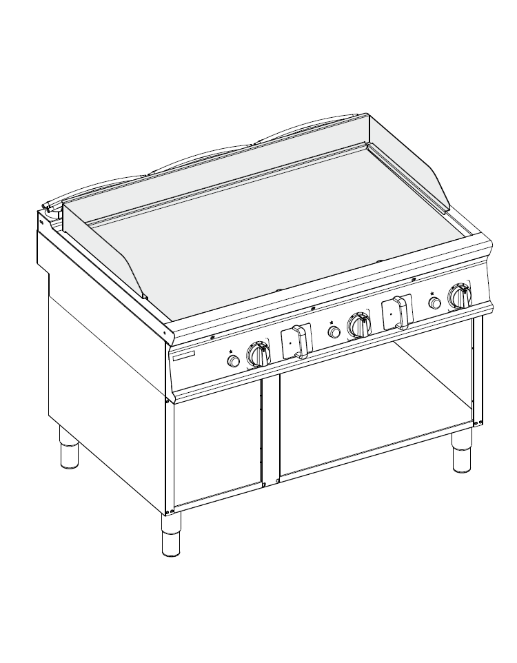 Fry-Top a gas su vano aperto, 3 zone cottura, piastra liscia cm 113x69, potenza gas Kw 24 - cm 120x90x90h