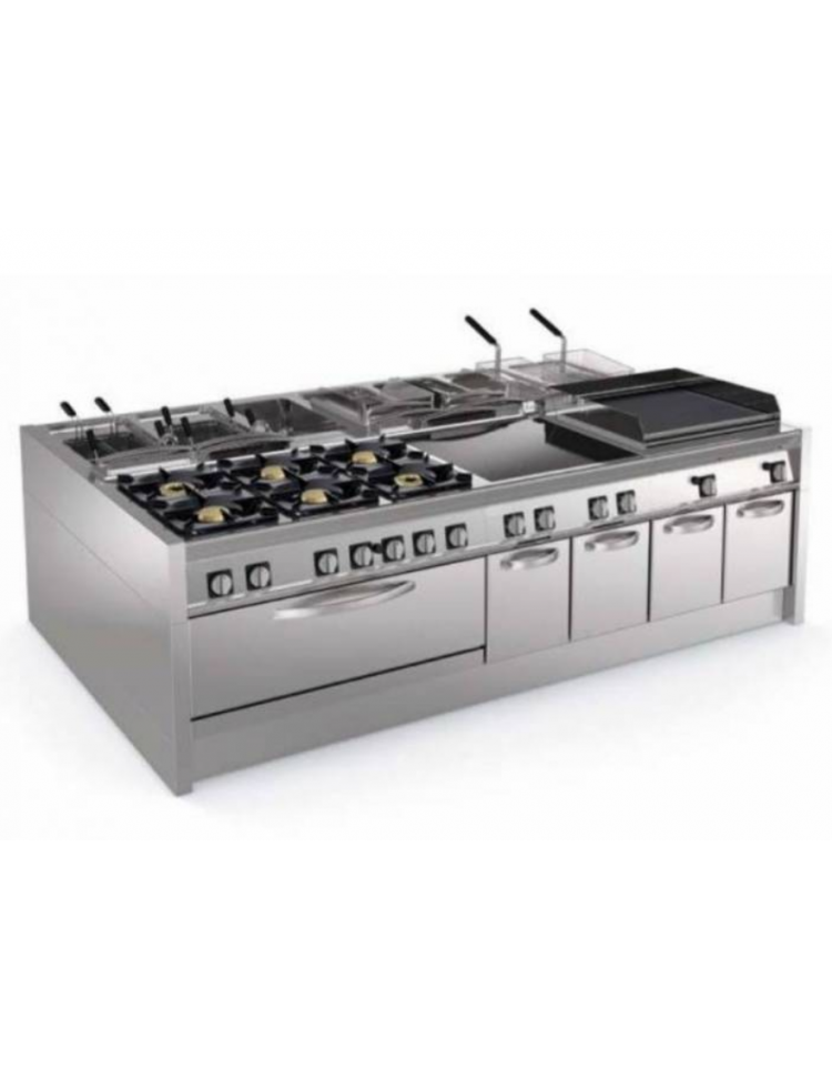 La piastra di cottura incassata e saldata ermeticamente al piano di lavoro permette di cucinare grandi quantità di cibi diversi.