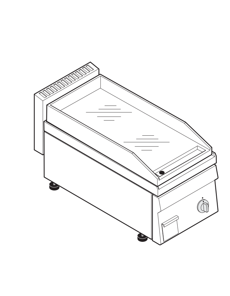 Fry-top elettrico, versione top da 35 cm, con piastra di cottura liscia cromata a specchio raccomandato soprattutto per la cottura di prodotti delicati.