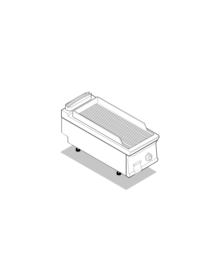 Fry-Top elettrico da banco, 1 zona cottura, piastra rigata cromata spazzolata cm 34,9x69,8, trifase Kw 6 - cm 40x90x28h