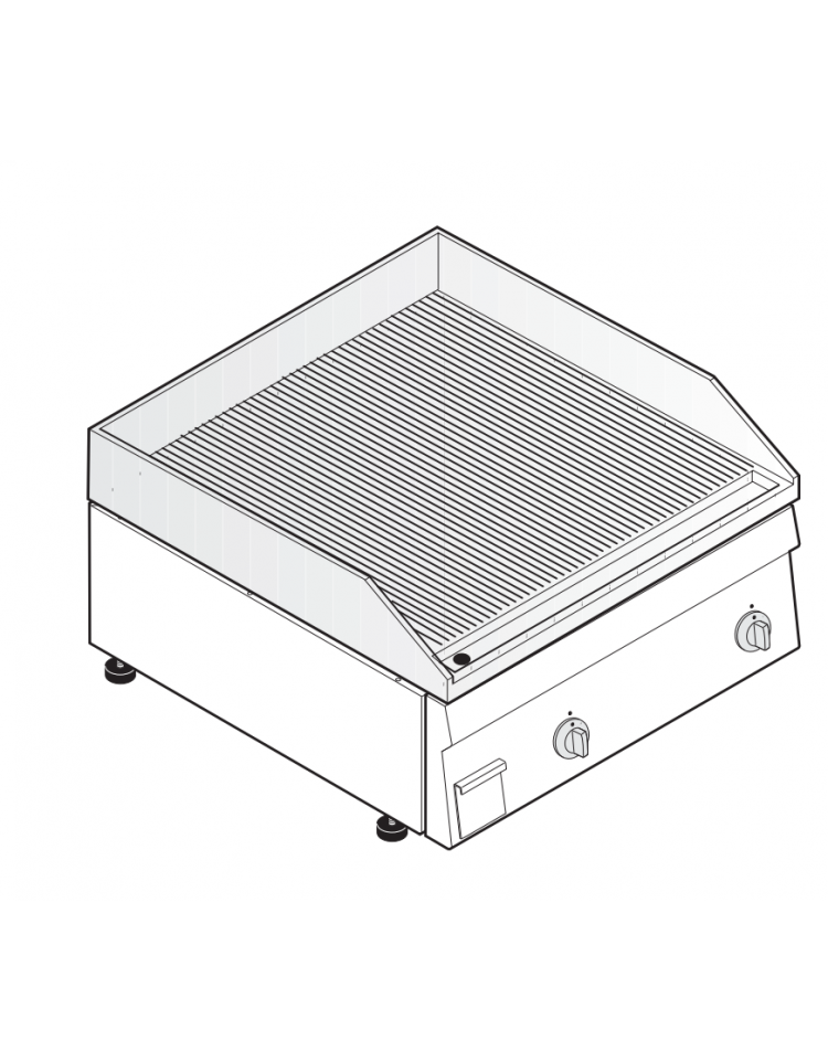 Fry-top elettrico, versione top da 70 cm, con piastra di cottura rigata in acciaio.