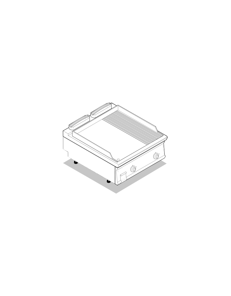 Fry-top elettrico versione top da 80 cm con piastra di cottura 2/3 liscia e 1/3 rigata cromata spazzolata che permette di cuocere una miriade di prodotti diversi: dalla carne al pesce e verdure.