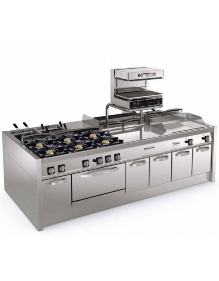 La piastra di cottura incassata e saldata ermeticamente al piano di lavoro permette di cucinare grandi quantità di cibi diversi.