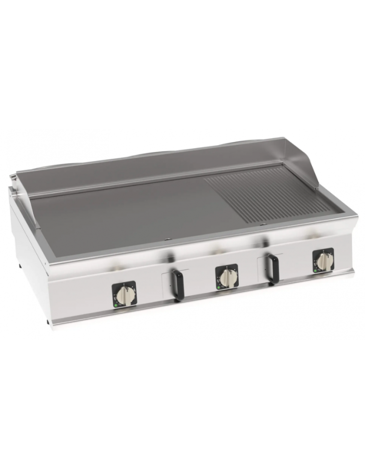 Fry top elettrico da banco in acciaio inox - piastra 2/3 liscia + piastra 1/3 rigata - potenza 9000 W - cm 84x50x20h