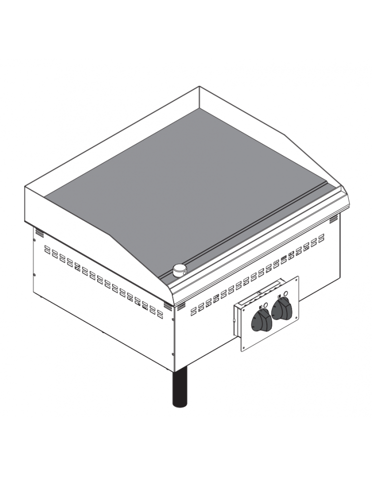 Fry-Top elettrico da incasso, 2 zone cottura, piastra liscia cm 69,6x56,4, potenza tot. Kw 7,8 trifase - cm 70x60x26,6h