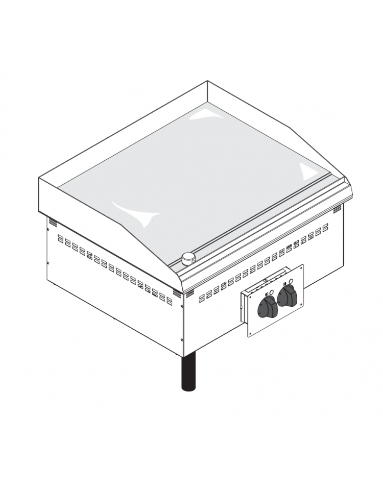 Fry-top elettrico drop-in, dimensioni 70 x 60 x 26,6 cm, con piastra di cottura liscia cromata a specchio raccomandato soprattutto per la cottura di prodotti delicati.