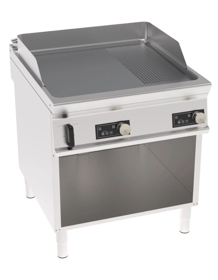 Fry-top elettrico su mobile a giorno - 1/3 rigato + 2/3 liscio, piastra cm 110,5x65 - 3 zone di cottura - cm 120x90x90h