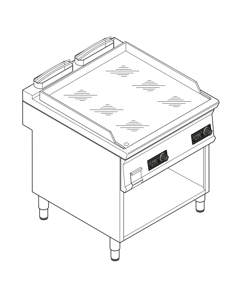 Fry-Top elettrico su vano aperto, 2 zone cottura, piastra liscia cromata - con controllo elettronico - cm 80x90x90h