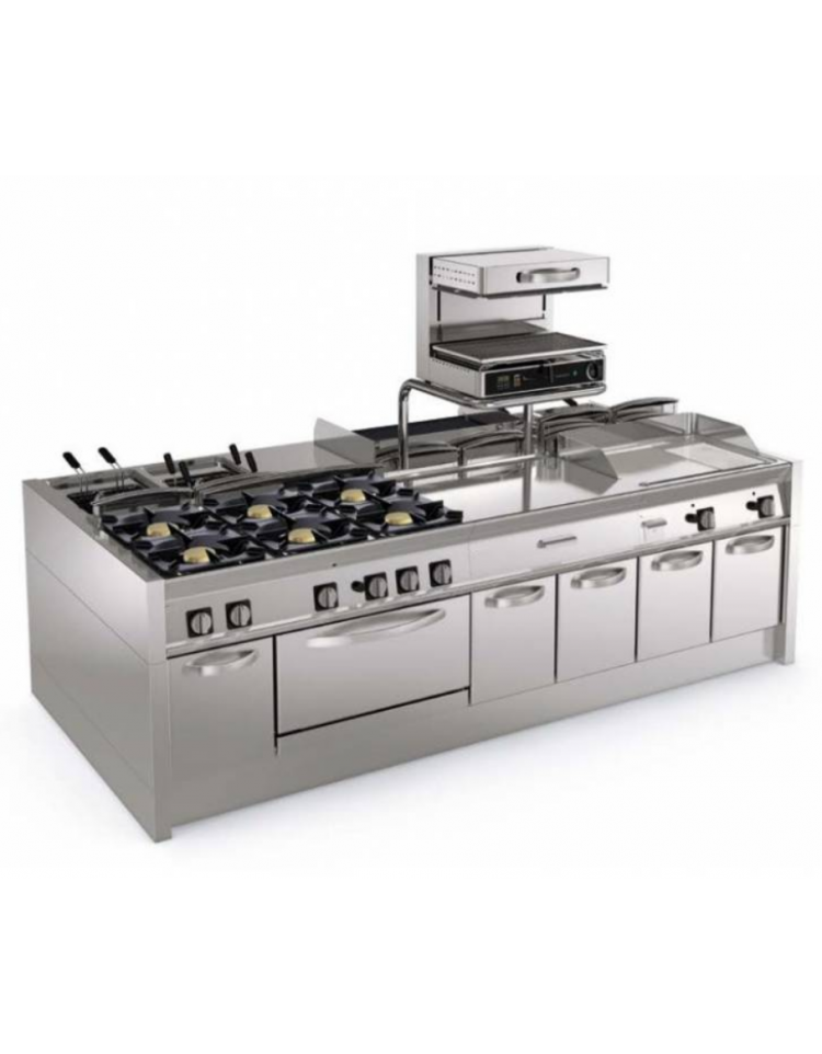 La piastra di cottura incassata e saldata ermeticamente al piano di lavoro permette di cucinare grandi quantità di cibi diversi.