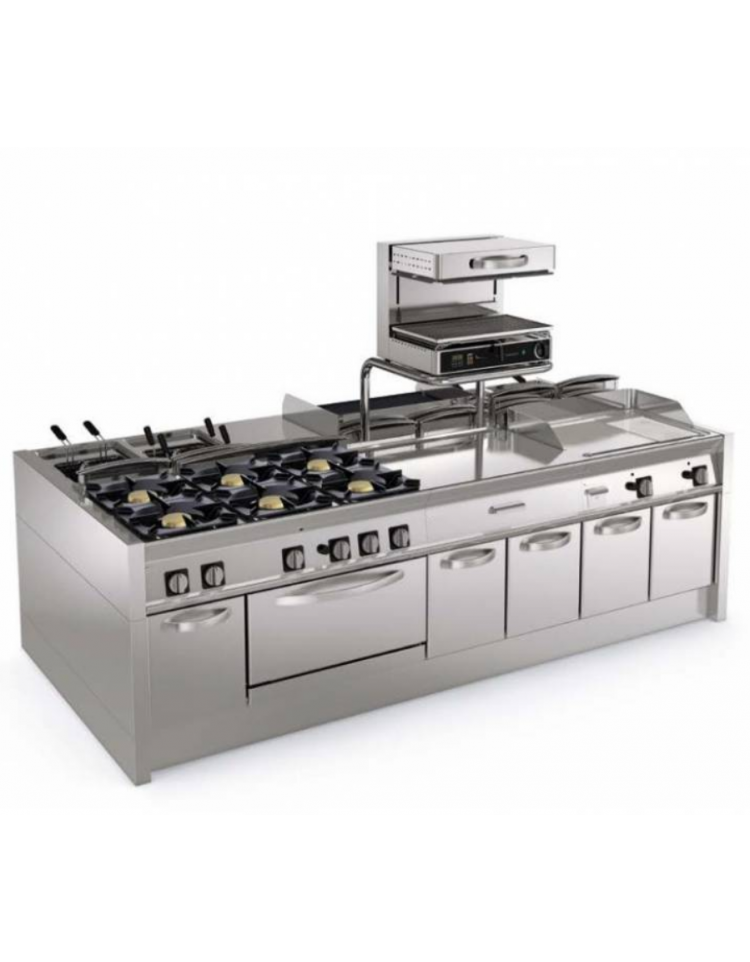 La piastra di cottura incassata e saldata ermeticamente al piano di lavoro permette di cucinare grandi quantità di cibi diversi.
