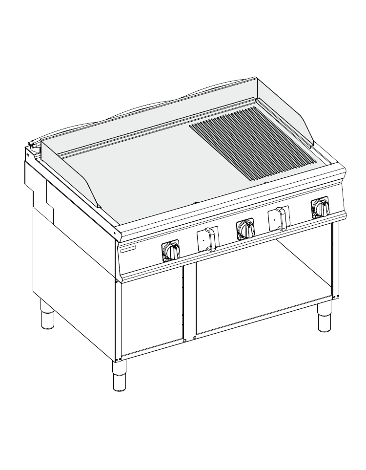 Fry-Top elettrico su vano aperto - piastra 1/3 rigata + 2/3 liscia, zona cottura cm 113x69 - trifase Kw 18 - cm 120x90x90h